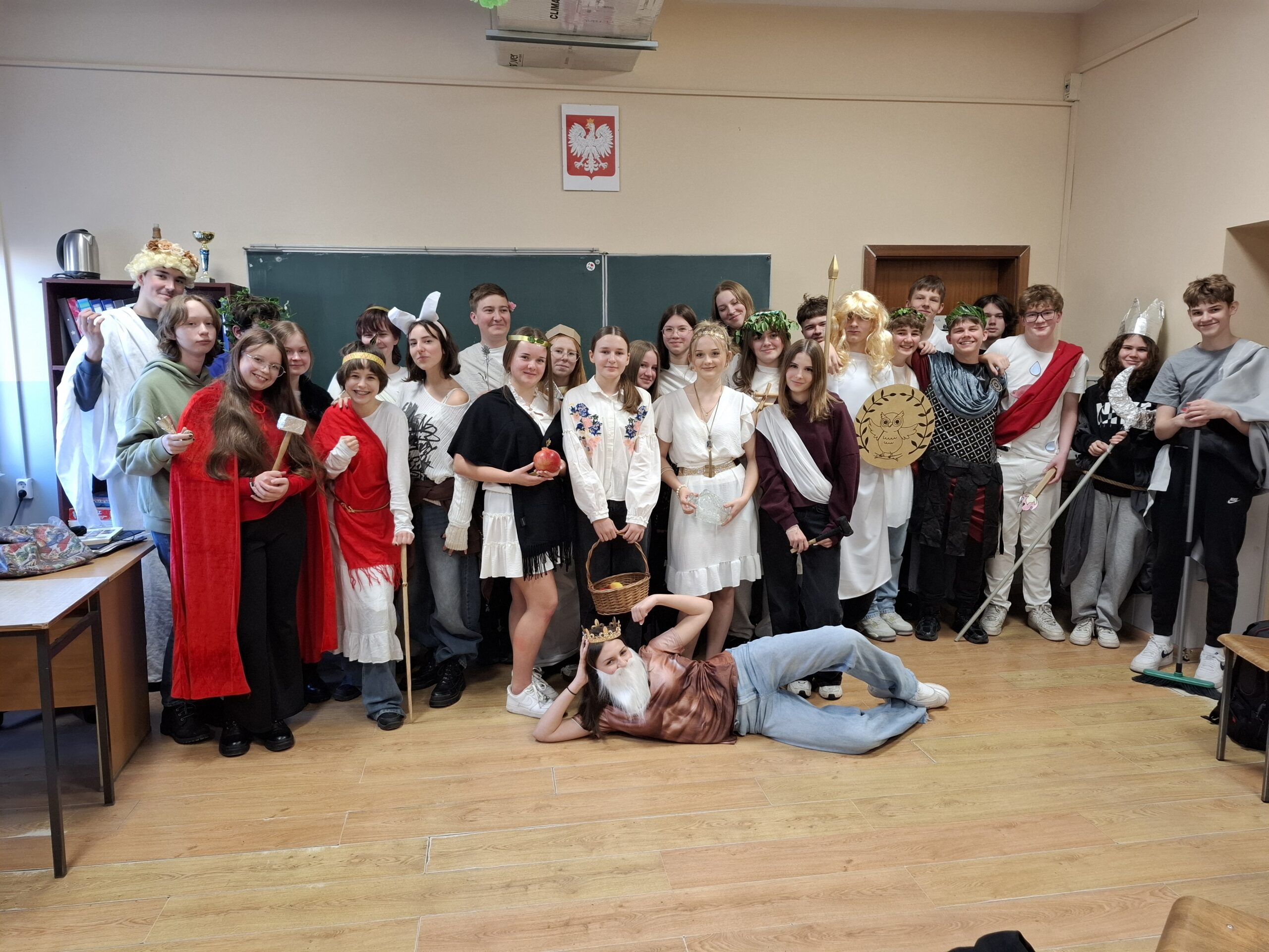Takie podejście pozwoliło nie tylko lepiej zrozumieć sens mitologicznych archetypów, ale także pokazało, że starożytne mity wciąż mogą być aktualne i bliskie współczesnemu uczniowi. Lekcji towarzyszyła przyjazna atmosfera, liczne brawa dla prezentujących oraz – co równie ważne – bardzo dobre oceny, które były nagrodą za włożony wysiłek.