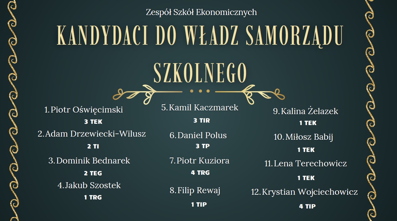 W tegorocznych wyborach kandydują uczniowie reprezentujący różne klasy i kierunki kształcenia. Każdy z nich wnosi swoje pomysły, energię i chęć działania na rzecz szkoły. Oto lista kandydatów:
